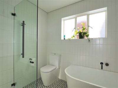 * Near new bathroom, separate shower and bath, built-in Sonos speakers