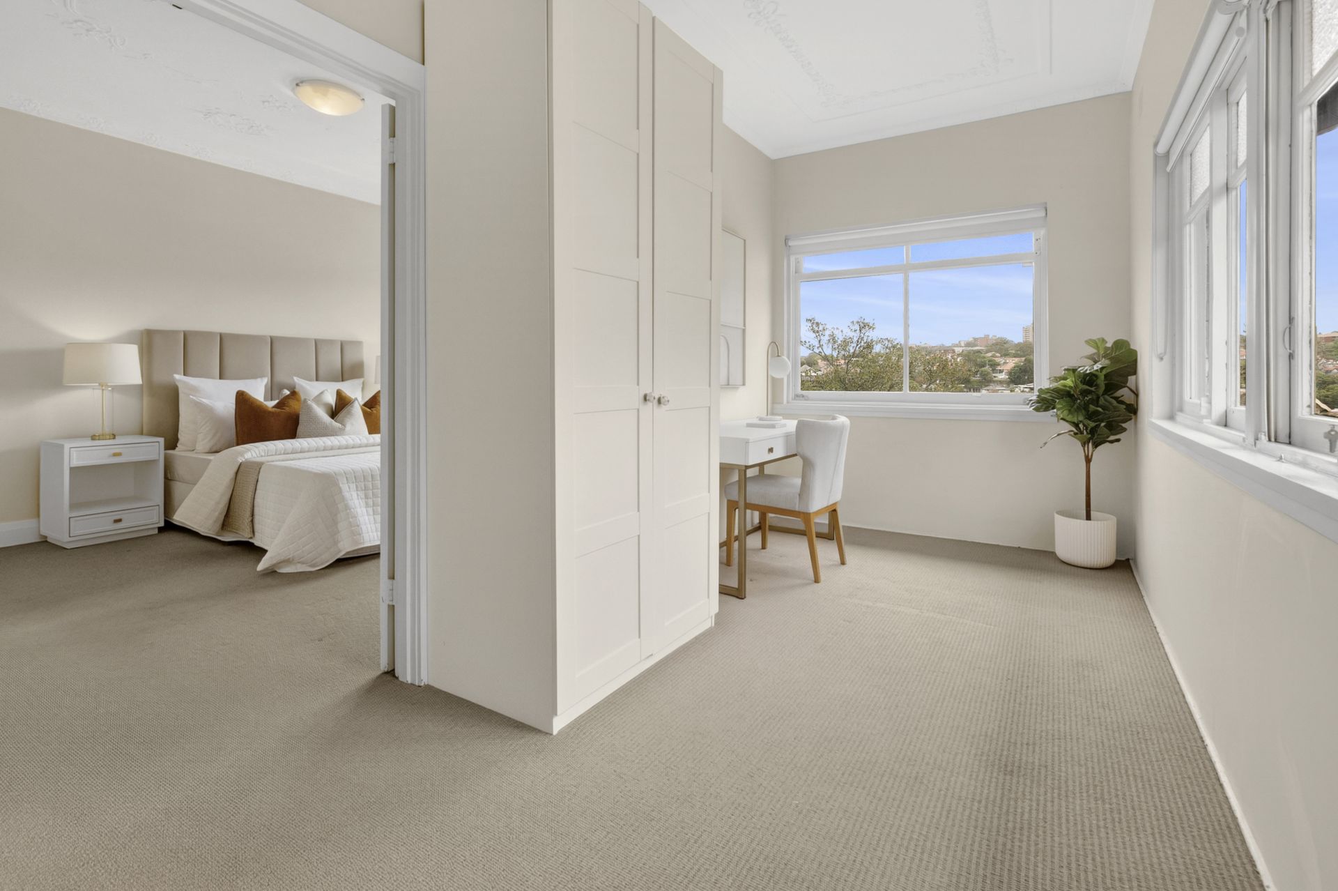 * Adjoining large study room/3rd bedroom with robes and bay views
