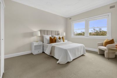 On the top floor of 'Windemere' this substantial (105sqm) semi-like apartment captures the essence of old-world glamour in a location that is highly aspirational. One of only 6 in this superb Art-Deco block, it extends across half a floor, with windows on three sides and sparkling Mosman Bay, North Sydney and Bridge views from its front.
